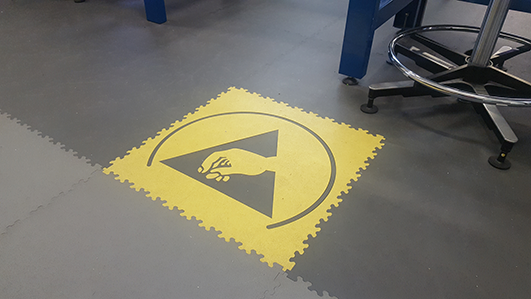 Agrandissement des locaux par la création d'un nouvel atelier conçu et équipé pour être ESD: sol en dalles antistatiques, postes de travail, éléments de stockage des cartes, bacs de manutention, équipement du personnel, etc…