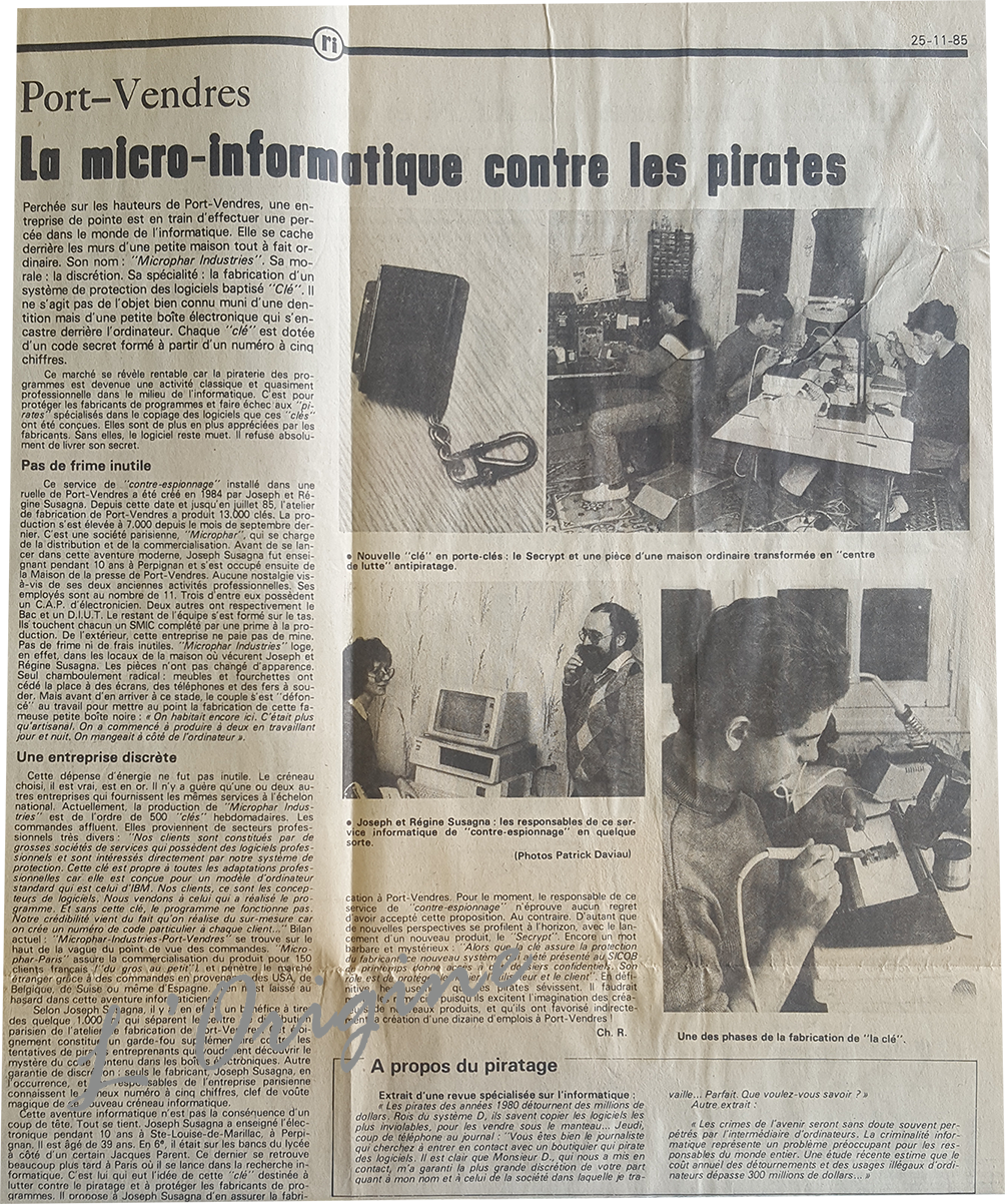 Création de Microphar Industries pour la fabrication électronique d'un système de protection informatique (dongle): plus d'1 million de clés fabriquées en 10 ans.